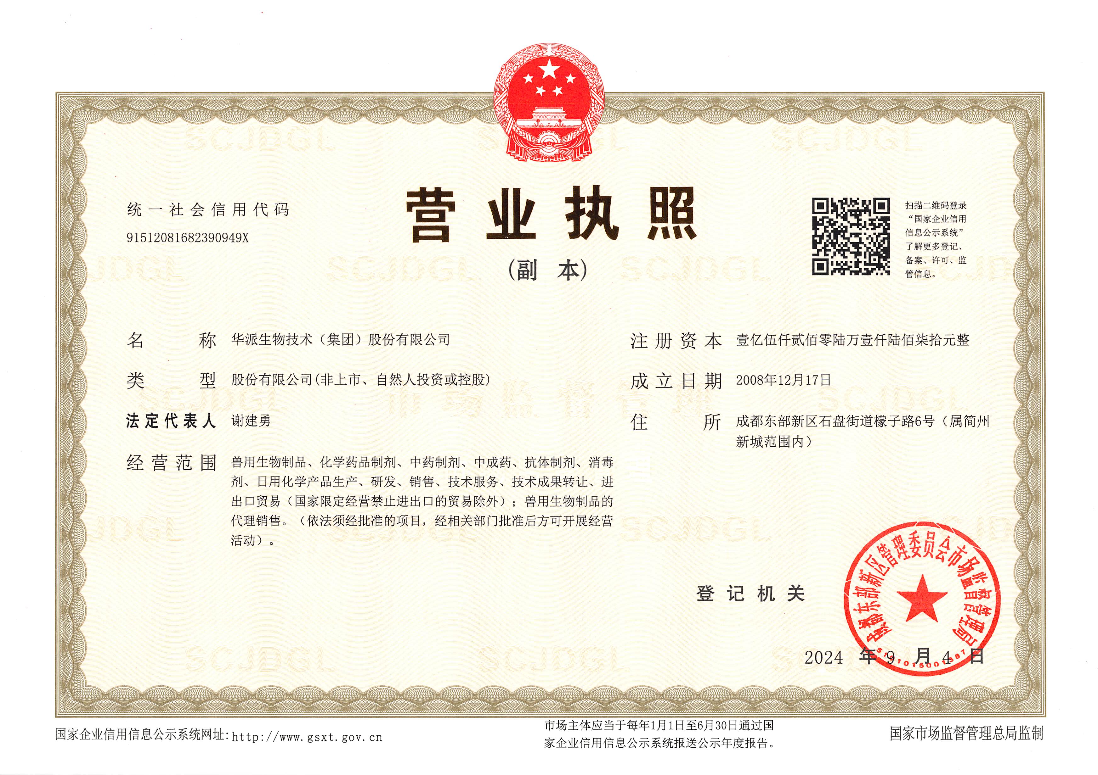 华派生物集团营业执照