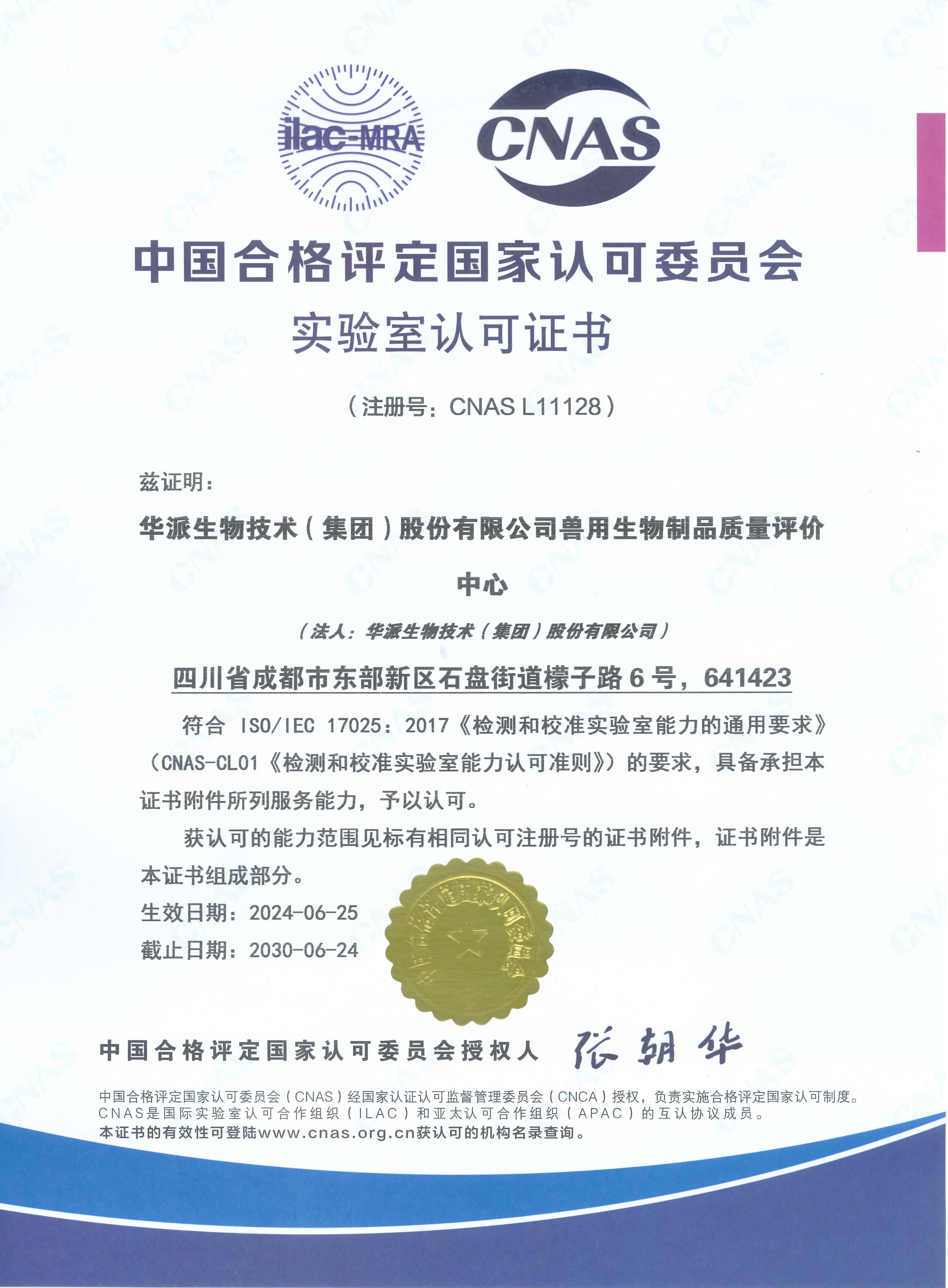 华派生物GMP证书