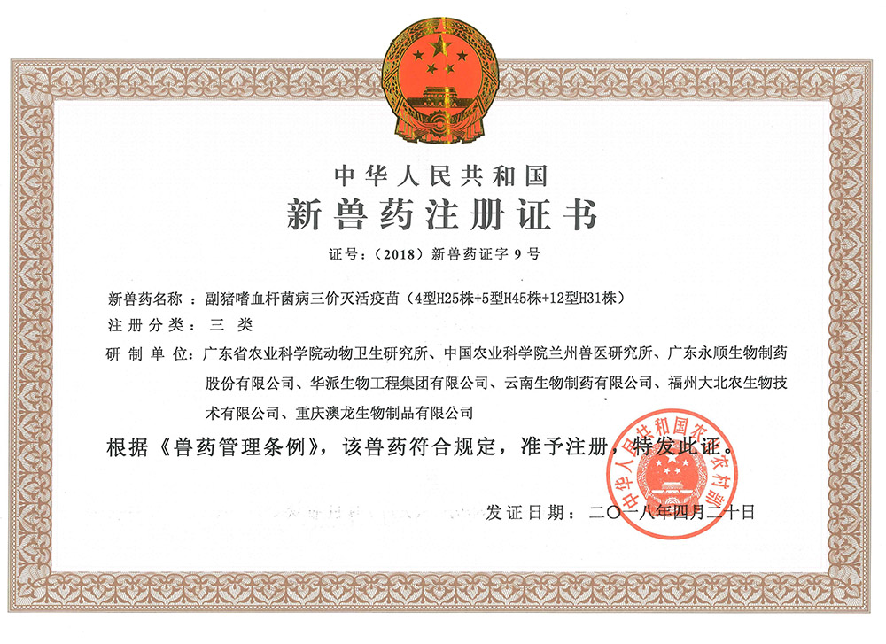 副猪嗜血杆菌病三价灭活疫苗(4型H25株+5型H45株+12型H31株)