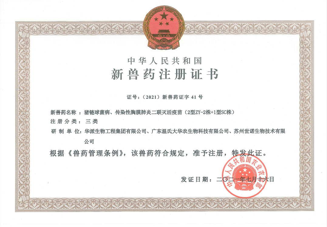 猪链球菌病、传染性胸膜肺炎二联灭活疫苗( 2型ZY-2株+1型SC株)
